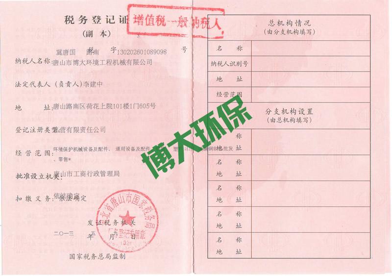 博大国税副本 博大营业执照副本 博大组织机构代码证